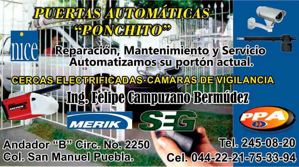 En Puertas Automáticas Ponchito somos una empresa dedicada al mantenimiento y reparación de portones eléctricos. Lo mejor es que nuestros clientes no tienen que exponerse al bajar de su automóvil al salir o entrar de su domicilio. 20 años de experiencia nos avalan.